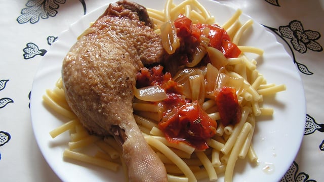 Cette recette est un moyen simple de se régaler avec du canard. Rien de compliqué dans cette préparation, vous n'aurez besoin que d'ingrédients du quotidien. Après avoir fait revenir vos cuisses de canard dans de l'huile d'olive, vous aurez simplement à ajouter de l'oignon, des tomates, une branche de thym ainsi qu'un bouillon de légumes du commerce.