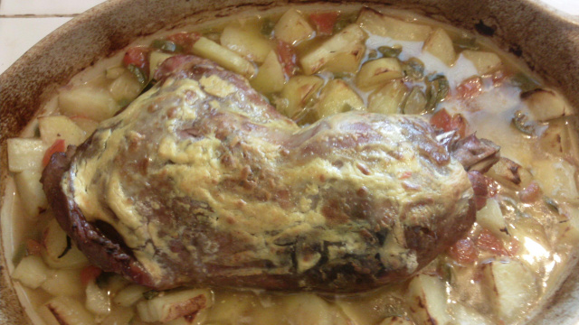 Les disposer autour,saler, poivrer,et mettre de l'eau jusqu'à presque couvrir les légumes, et enfourner pour 1heure (ou plus selon la taille de la cuisse) a 200 degrés en retournant la cuisse cotés peau vers le haut a moitié cuisson ne pas oublier de tourner le plat dans le four et d'arroser de temps en temps sortir le plat du four et badigeonner la cuisse du melange crème moutardeet enfourner pour 12 minutes de plus surveiller a ne pas bruler la moutarde et