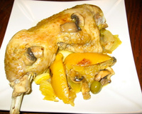 Cuisse de dinde cuite comme un tajine, avec des citrons confits au sel.