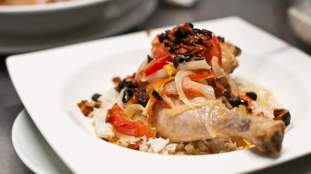 A 5 mn prêt, la cuisson du poulet et du riz se finissent en même temps. Si le riz est cuit en premier, enlever le couvercle, le remuer et le laisser sur un feu tout doux jusqu'à la fin de la cuisson du poulet.