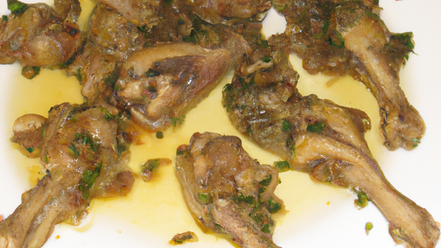 - Faites revenir les cuisses dans du beurre, dès qu'elles sont dorées ajouter pesil, echalotes et un verre de pastis laisser reduire 3 min et ajouter 1 boite de tomates pelées. Laisser cuire pendand 20 min et fariner un peu pour que la sauce epaississe. Servir avec des frites.