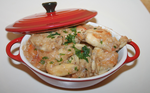 Laissez cuire 2minutes. Puis ajoutez le vin et continuez la cuisson 3 minutes.