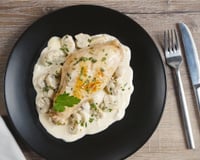 De délicieuses cuisses de lapin avec une sauce au Roquefort, ça change et c'est très bon.