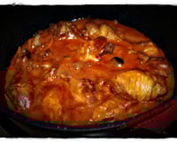 Mettre les cuisses de poulet à cuire sur ce mélange et verser le vin dessus, mettre un couvercle sur votre casserole et laisser mijoter une vingtaine de minutes en remuant de temps en temps.