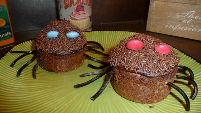 Vous pouvez vous aider d'un couteau pointu pour réaliser des fentes sur le côté de chaque gâteaux afin d'insérer les pattes en réglisse (découper 4 morceaux, les dédoubler et en insérer 4 de chaque côté des gâteaux).