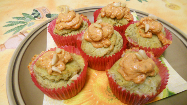 Laisser refroidir les cupcakes et mettre la crème ricotta dans une poche à douille.Décorer de pignon de pin.