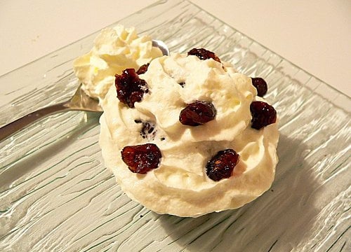 Quand les muffins sont cuits, sortez les du four et laissez les bien refroidir. Puis, déposez la chantilly à l'aide du siphon, parsemez de cranberries...