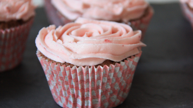 Un cupcake gourmand rehaussé d'une crème au beurre à la framboise déposé tout en délicatesse.