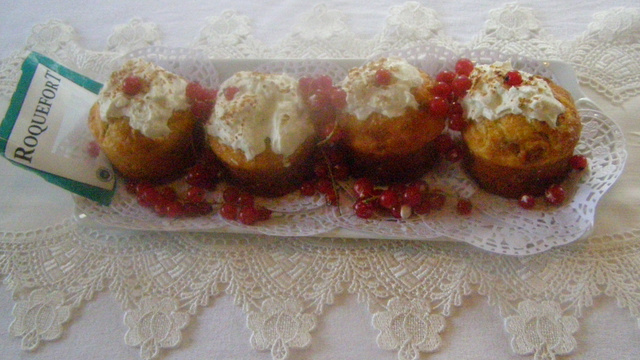 Au moment de servir, coiffer les cupcakes (qui doivent être froids) de la chantilly au roquefort.