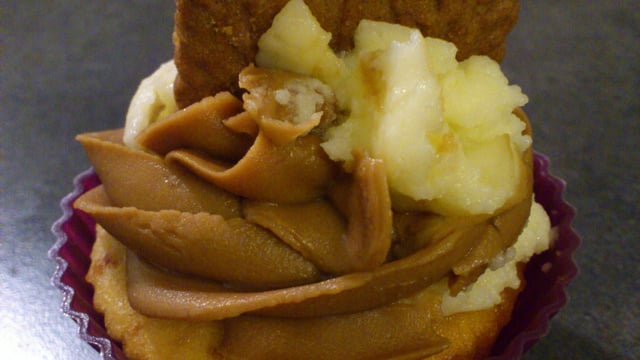 De moelleux cupcakes aux miettes de spéculoos, recouverts d'un glaçage alliant crème au beurre et pâte à tartiner au spéculoos, le tout agrémenté d'un demi spéculoos pour terminer en beauté... Un cupcake parfait pour les adeptes de spéculoos