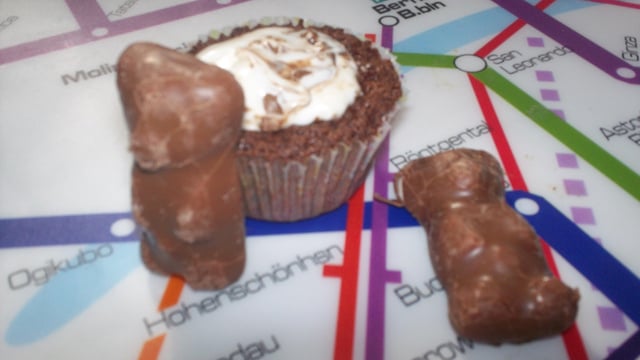 Faire fondre au four à micro-ondes les PETITS OURSONS GUIMAUVE. Recouvrir chaque cupcake de PETITS OURSONS GUIMAUVE fondu.
