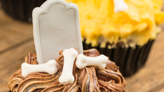 De délicieux cupcakes très gourmands à habiller avec un topping chocolat, café ou citron. Avec leur décoration spéciale Halloween, ils vous feront froid dans le dos !
