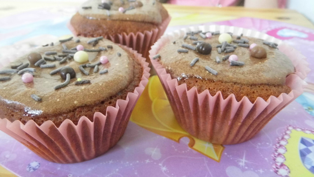 Etaler la crème au beurre sur les cupcakes refroidis avec le dos d'une cuillère ou à la poche à douille.