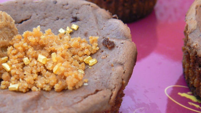 Pour décorer : mettez du spéculoos émietté, un mini-spéculoos et pour finir du sucre doré de Vahiné !