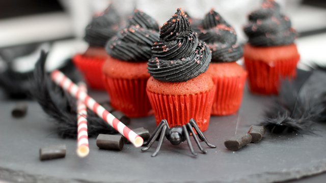 Une version chic et gourmande de cupcakes en rouge et noir .