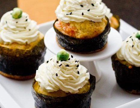 De délicieux cupcakes au saumon, wasabi et fromage à la crème Elle & Vire, qui vont faire voyager vos papilles.Une recette proposée par Sandra du blog 'Cuisine Addict'.