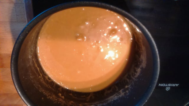 Préparez le caramel : faite fondre le sucre dans une casserole sans eau. Dans une autre casserole, faite bouillir la crème liquide. Dès que vous obtenez une belle couleur brune, versez la crème liquide et le beurre demi-sel. Mélangez puis portez à ébullition. Laisser refroidir.