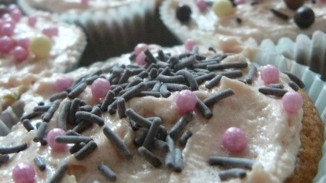 Etaler la crème au beurre sur les cupcakes refroidis avec le dos d'une cuillère ou à la poche à douille. Décorer avec les billes multicolore ou autre.