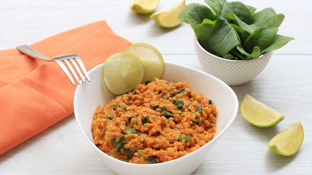 Portez à ébullition puis baissez le feu et laissez mijoter jusqu'à ce que les Céréales et Lentilles soient tendres. Ajoutez les pousses d’épinard, mélangez et poursuivez la cuisson pendant quelques minutes encore.