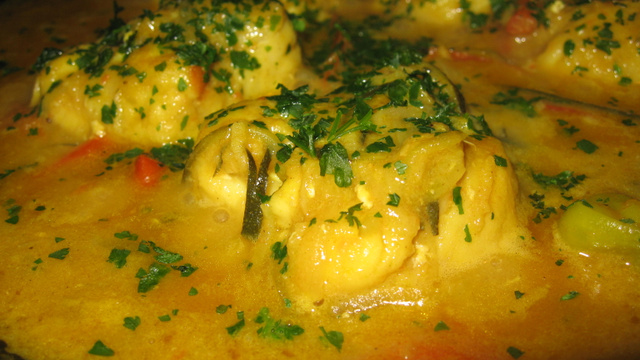 Quand votre sauce est onctueuse, mettre les cubes de poisson, le piment. - 6