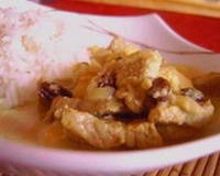 2/ Compléter avec le lait de coco, les raisins et du sel, poivre, piment ainsi que les pommes en quartiers. Couvrir et laisser mijoter 50 minutes.