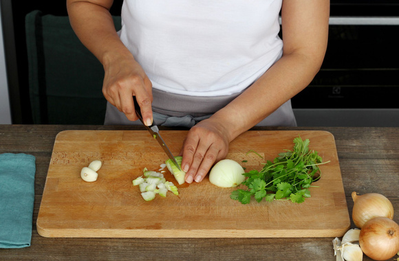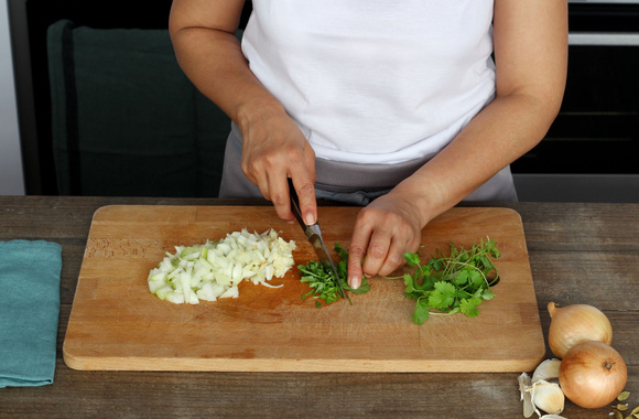 3Hachez une partie du bouquet de coriandre et prélevez 2 cuillères à soupe de coriandre hachée.