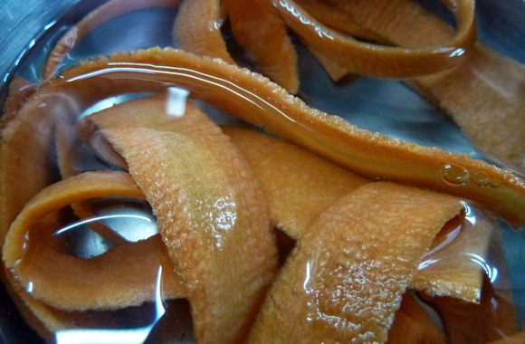 2Réaliser des lianes ou des bâtonnets en carottes puis les cuire à l'eau. Il faut qu’elles restent croquantes.