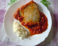 Faire cuire les darnes au gril ou à la poêle et servir en les couvrant de la purée de tomates.