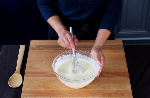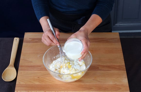 4Ajoutez le lait petit à petit tout en mélangeant.