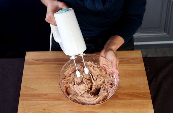 8Fouettez à l'aide d'un fouet électrique jusqu'à ce le mélange soit bien ferme.