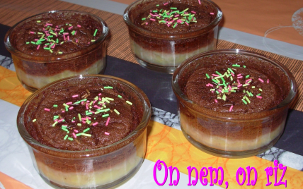 Un dessert fondant à la banane en bas et mousseux au chocolat en haut!