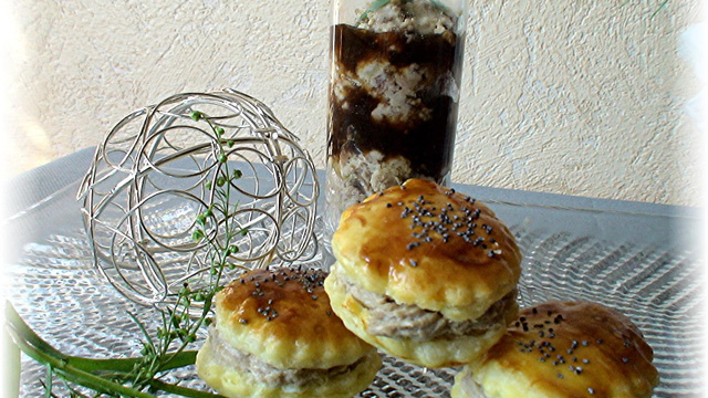 Remplir une poche à douille de ce mélange et déposer sur les feuilletés.