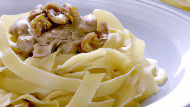 - Faites cuire les tagliatelle à votre gout egoutez les et jettez les dans la saiteuse.poivrez et laissez mijoter le tout 2 minutes avant de servir