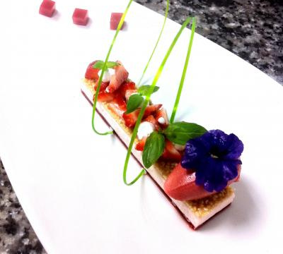 Accompagné de fraises fraîche coupé en quartier. Et d'une glace fraise basilic.
