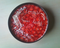 Dans une casserole chauffer le coulis de fraise. Essorer la gélatine et la faire dissoudre dans le coulis de fraises. Réserver.