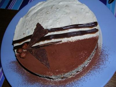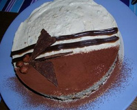 Fouetter le beurre ramolli avec 30g de sucre et le cacao, puis ajouter les jaunes d'oeufs. Fouetter . Faire fondre le chocolat et l'ajouter à l'appareil. Mélanger rapidement et incorporer en 3 fois les blancs montés en neige ferme avec le reste du sucre, mélanger rapidement au fouet une première portion de blancs pour détendre la préparation et le reste plus délicatement. Dresser à l'aide d'une poche à douille un disque de pâte de 24-25 cm (supérieur au diamètre du cercle) et 1cm d'épaisseur. Cuire 8-10 mn au four à 200°. Laisser refroidir et ajuster le biscuit au diametre 20 cm. - 3