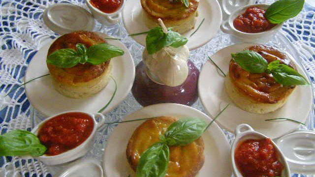 Verser dans des ramequins préalablement beurrés. Faire cuire au bain-marie pendant 20 minutes. (Le dessus doit être ferme à la pression du doigt). Démouler dans le plat de service. Servir tiède ou froid avec un coulis de tomate au basilic.