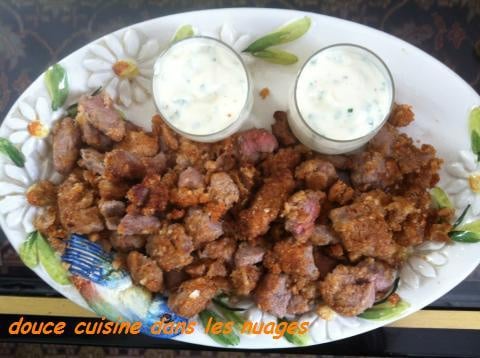 Frire les dés d'agneau après les avoir passer dans l'oeuf battu puis le mélange chapelure et noisettes La cuisson est très rapide à peine 2 mn.