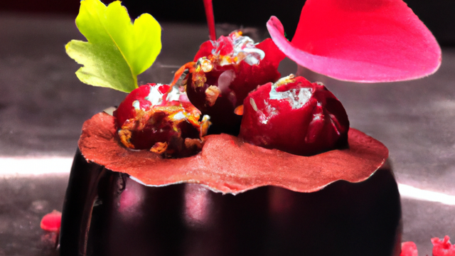 Râper les betteraves, puis les cuire dans un sirop vinaigré (eau, vinaigre de cidre, sucre, hibiscus).Cuire les betteraves, puis décanter. Laisser réduire le sirop à consistance. - 5Dressage :Dresser sur le disque de feuilletage au romarin, cordon de sirop de betterave.Sur le dessus, accompagner de figottes de pommes, d'alumettes de betteraves rouges, tige de romarin.