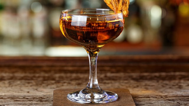 Un cocktail à base de liqueur de banane, de liqueur de mangue et d'eau de vie de cerise.