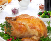 Une dinde a la chair fondante farcie de boudins blancs aux truffes et de pleurotes. Cette recette remporte la 7ème place du concours Volailles fermières Label Rouge.