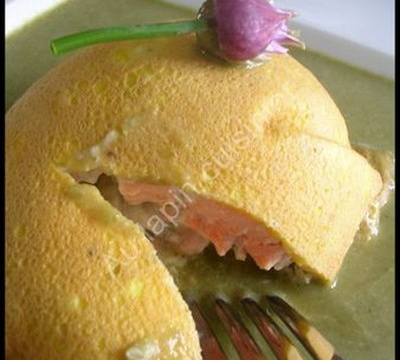 - Commencer par préparer l'omelette. Battre les oeufs avec le lait, salez et poivrez et faire cuire à feu vif, en deux fois, dans une grande crépière. Laissez refroidir.Préparation de la sauce :Faire revenir l'échalote hachée avec un filet d'huile d'olive puis ajoutez l'oseille, remuez et mouillez avec le vin blanc. Ajoutez la crème et faire cuire 5 minutes à feu doux. Découpez le saumon en petits cubes et l'intégrer à la sauce.Préchauffez le four à 200°C.Découpez les 2 omelettes en deux et recouvrir le fond de 4 moules, en silicone, en forme de demi-sphère. Mettre la préparation au saumon et recouvrir avec l'omelette. Faire cuire 16 minutes.Préparation de la crème à l'oseille :Faire cuire les perles du Japon, à part, dans de l'eau bouillante, pendant 30 minutes.Dans une casserole, faire cuire l'oignon avec une noix de beurre, ajoutez l'oseille et remuez. Mettre le bouillon de volaille et faire cuire 10 minutes. Mixer puis ajoutez les perles du Japon. Rectifier l'assaisonnement.Déposez un dôme au saumon dans une assiette et entourer de crème à l'oseille, servez immédiatement !