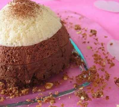 Au moment de servir, démouler les dômes dans des assiettes individuelles, retirer délicatement le film ou le papier alu. Saupoudrer un peu de croustillant dans chaque assiette et du cacao non sucré à l'aide d'une petite passoire sur le dessus de chaque dessert. Déguster sans attendre !