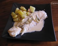 Des dos de cabillaud cuits au four, accompagnés d'une sauce crémeuse au cidre.