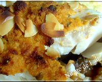 Dos de cabillaud recouvert sur une face d'une croûte à la moutarde aux arômes et saveurs de Provence associée aux amandes.