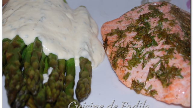 Dresser les dos de saumon accompagnés d'asperges à la crème. Bon appétit.