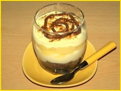 Déposez par-dessus les poires pelées et coupées en dés et recouvrez avec le reste de fromage blanc. Décorez avec du Nutella et du pralin.