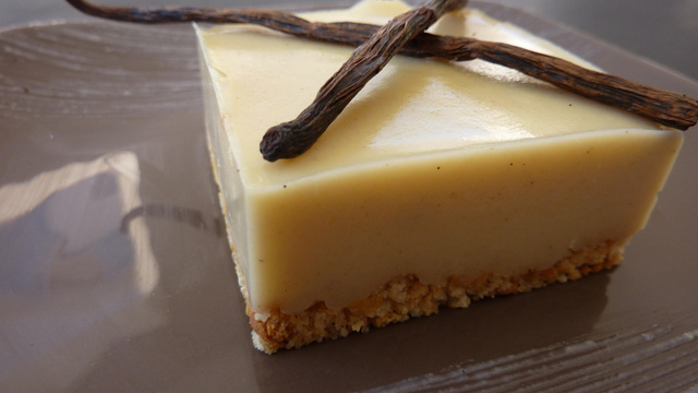 Crème à la vanille au coeur fondant de Nocciolata sur son lit de petits-beurre au beurre salé.