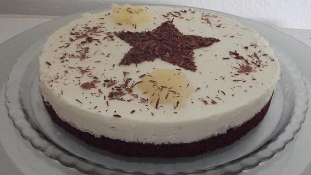 Placer le biscuit chocolaté au fond d'un cercle pâtissier, puis verser la mousse aux poires dessus. Décorer selon son goût. Laisser le gâteau au frais au moins 5 heures avant de servir, il est préférable de le préparer la veille pour le lendemain.