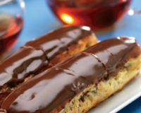 Je mélange le cacao préalablement délayé dans un peu d'eau, le sucre glace et l'eau progressivement pour obtenir un beau glaçage. J'étends cette préparation sur les éclairs et les mets au réfrigérateur.